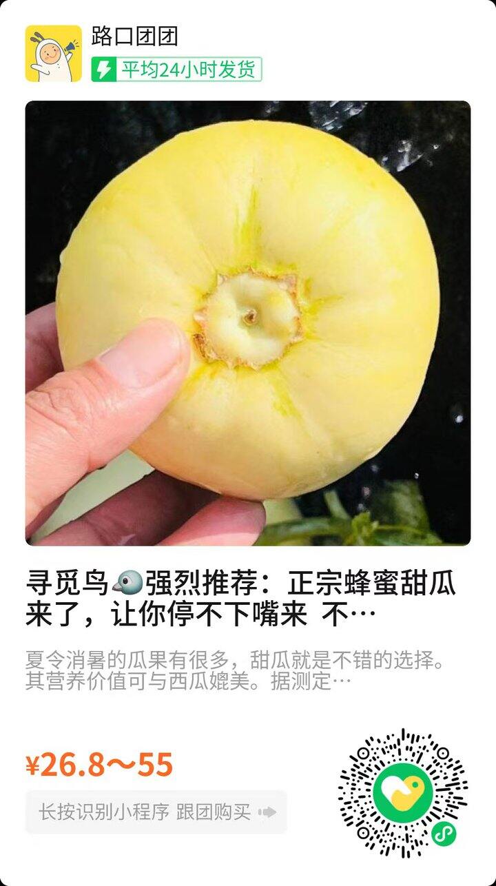 蜂蜜甜瓜【亏本限量试吃】净重约:2斤/箱(3~5个) 26.8元
