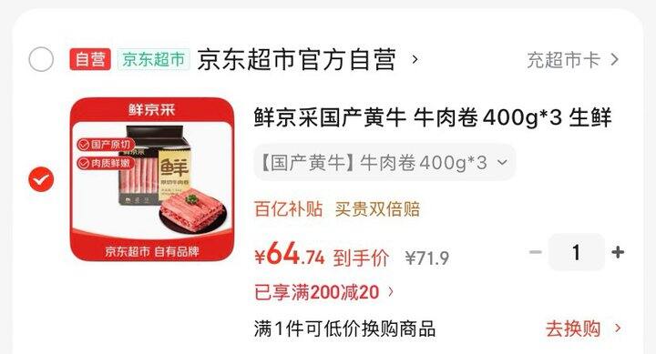 鲜京采国产黄牛原切牛肉卷400g*3袋💰64.7拍https://u.jd.com/cDVHNej