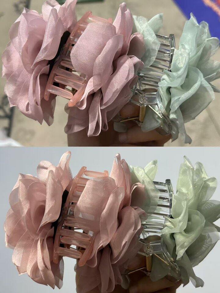 前几天收到绿色有酸味,我就拿去阳台上晒了,后面发现没那个酸味了,不太放心,我又过了一下水,抓在晾衣杆上晒了,晒了以后不是特别皱巴了,但还不如灰粉的饱满。我买的黑色那个就是又圆又饱满,花型稍微硬挺的,灰粉和灰绿都是太仙气,太软易皱。