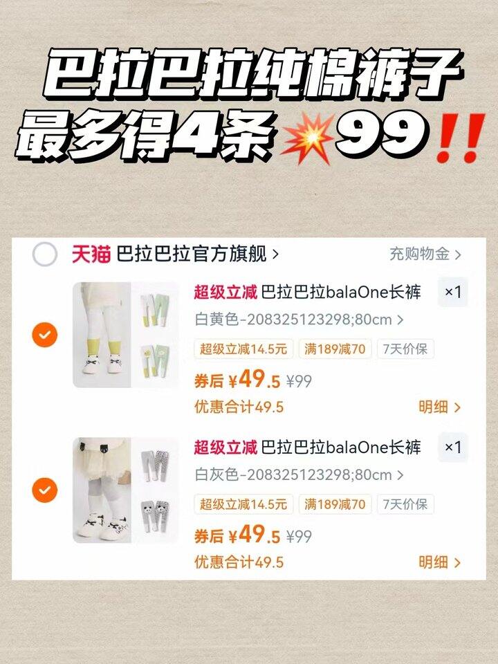 巴拉巴拉纯棉裤子💰24.7