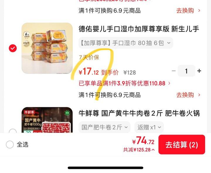 1,德佑婴儿手口湿巾加厚尊享版 65g 80抽6包