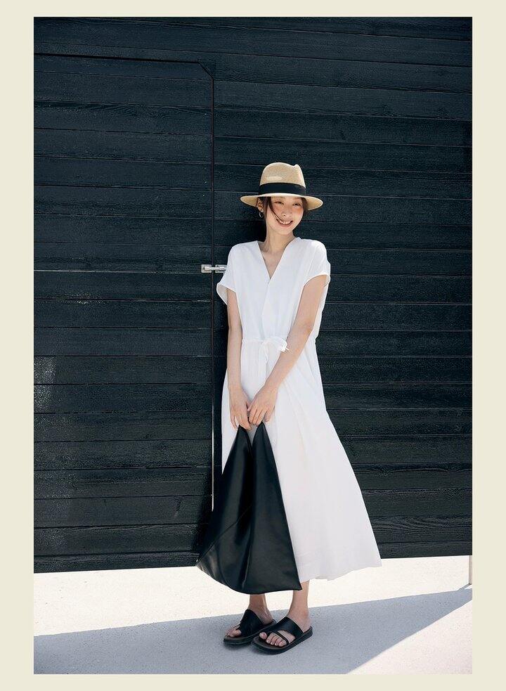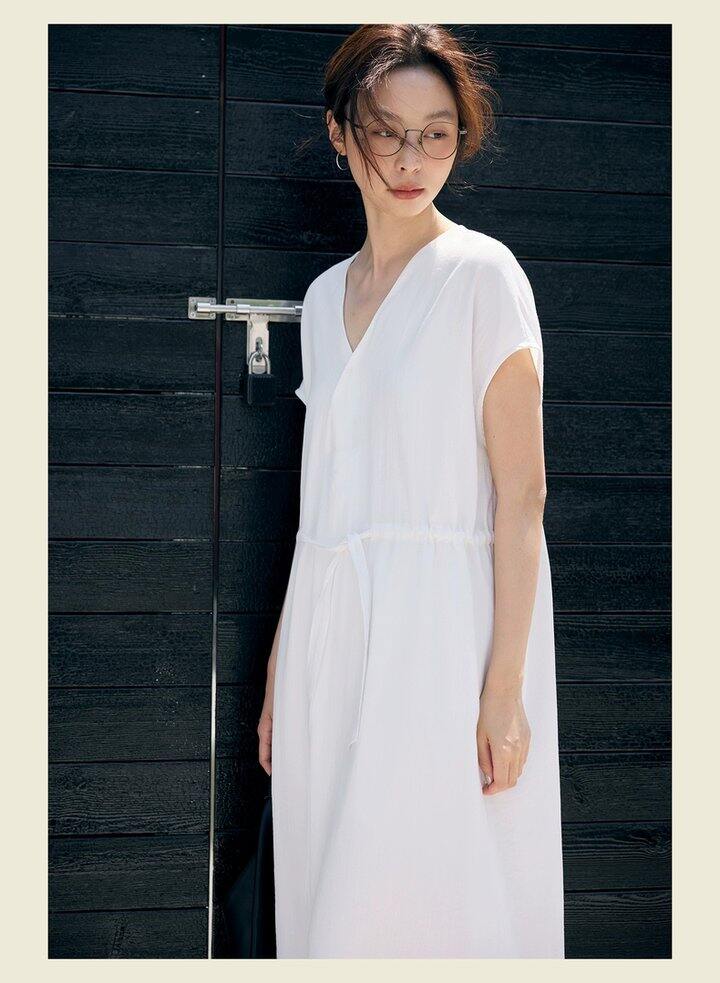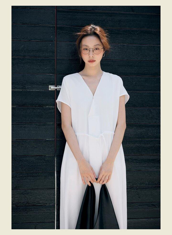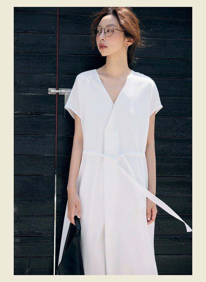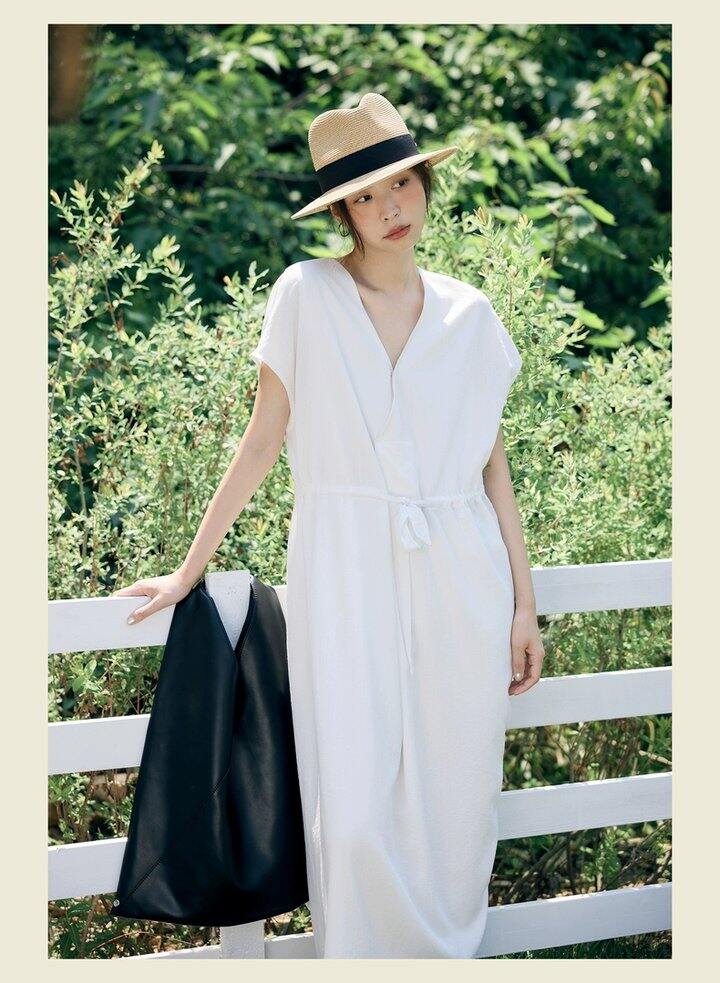 HU006 「我在闲鱼发布了【全新有吊牌法式 V 领棉麻落肩款连衣裙收腰显瘦气质百搭长裙均】」