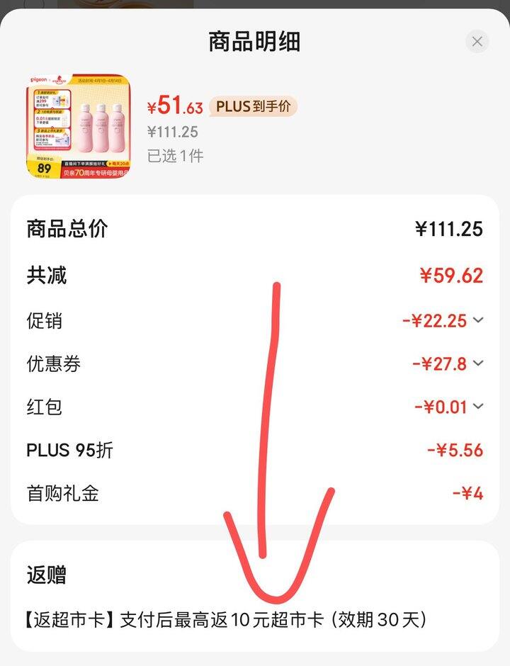 或者三瓶装凑后51.63返10超市卡