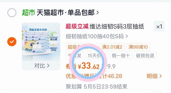 33💰维达细韧s码抽纸100抽40包❗️