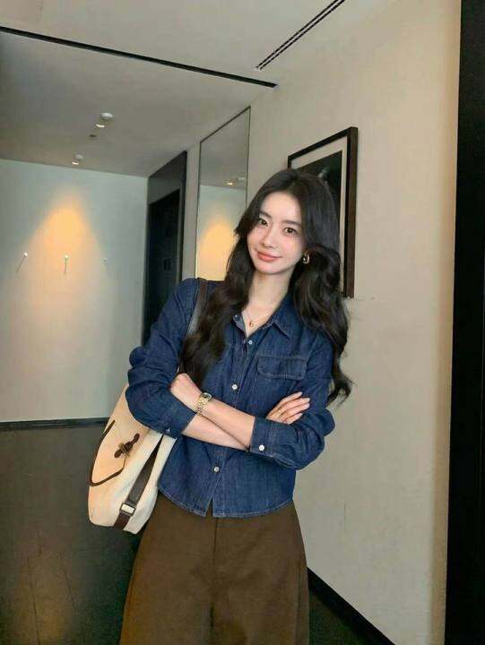 2617 女士春季莱赛尔棉休闲通勤百搭牛仔衬衫外套