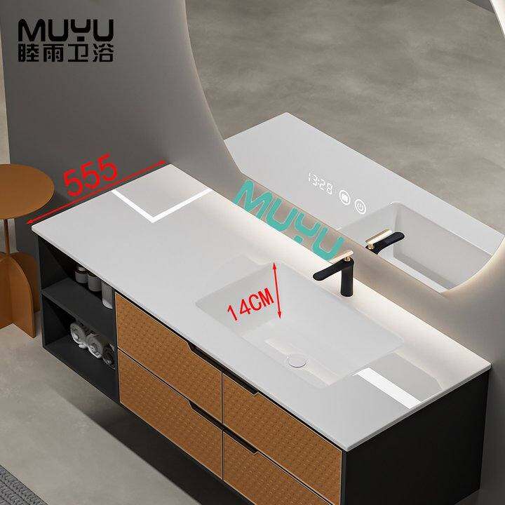 陶瓷一体盆洗手盆池浴室半嵌入式洗脸盆洗漱台盆切角定制55宽单水槽
