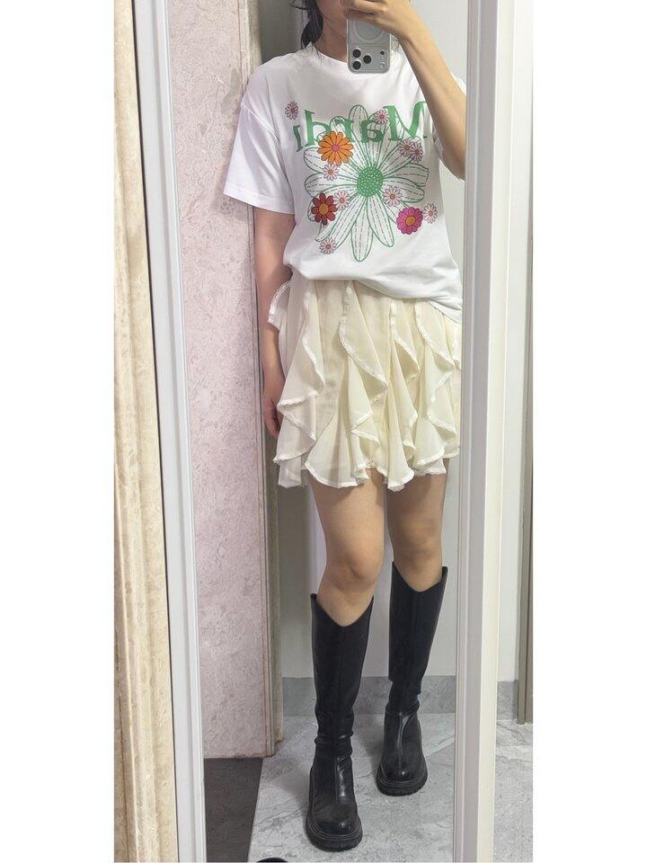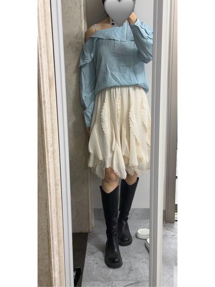 一开始是跟着博主买的穿搭,买的长款52裙长的,按博主的搭配是配到小腿长度的棕色靴子,配我这双靴子感觉很累赘。但觉得这个裙子挺好看的,于是又找了个42裙长的,穿上感觉好一些,暂时只搭配了白t感觉也不错(?)没有袜套,就找了个常规的长袜想试试搭配效果,结果腿变成小萝卜了哈哈哈,搭配有时候也是差之毫厘失之千里。