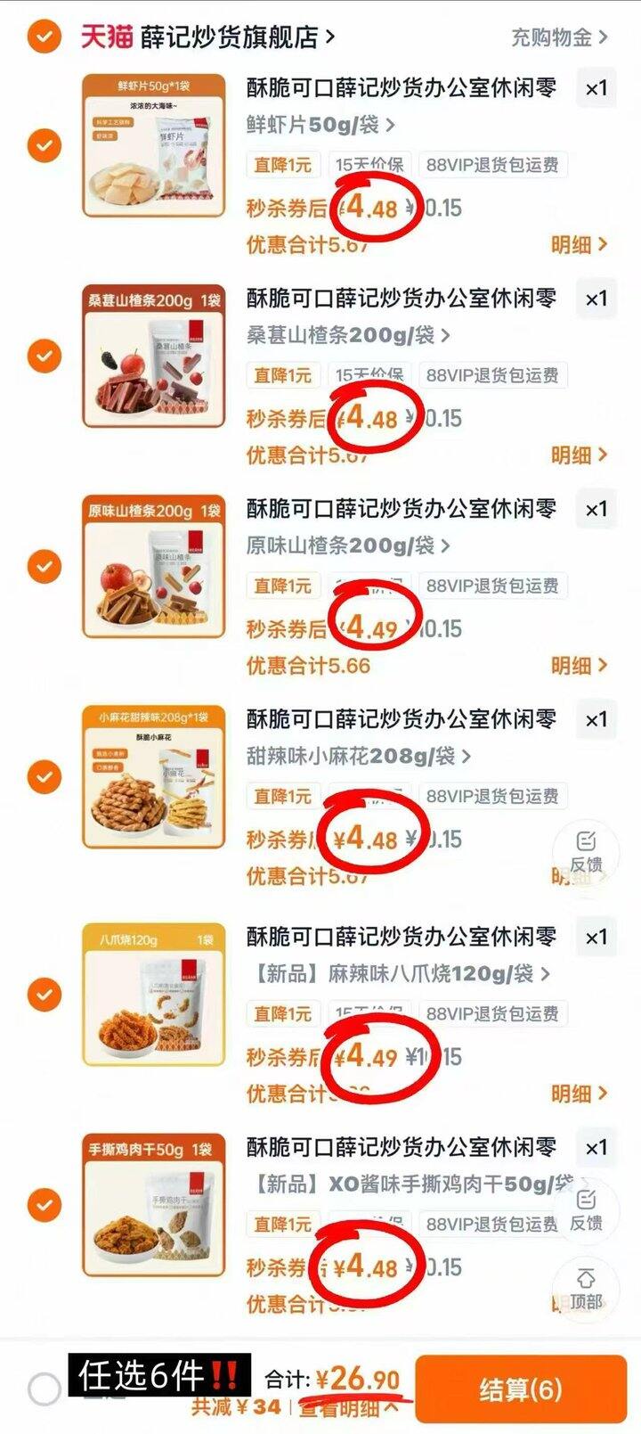 速‼薛记炒货休闲零食💥4.4