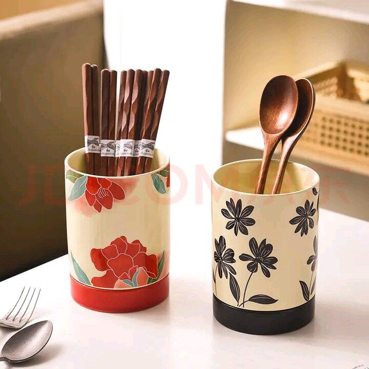 [闪耀]繁夏复古风陶瓷筷子筒大容量沥水