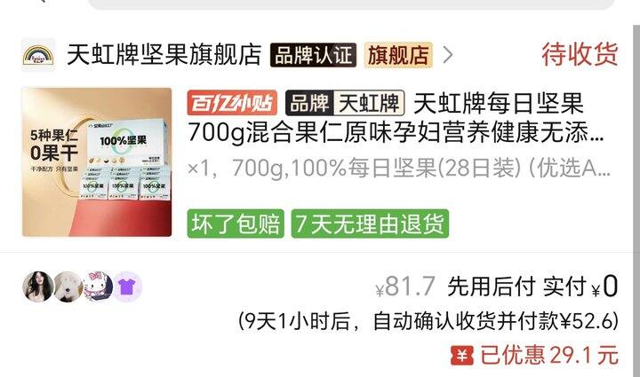 dbdb天虹坚果刷到26一斤好价没下单,昨天40一斤买的[胖鹿大哭],最近多多福袋五折好刷,回购悦鲜活,松下那个吹风机刷到过132的价格,好用的就是高温有焦味