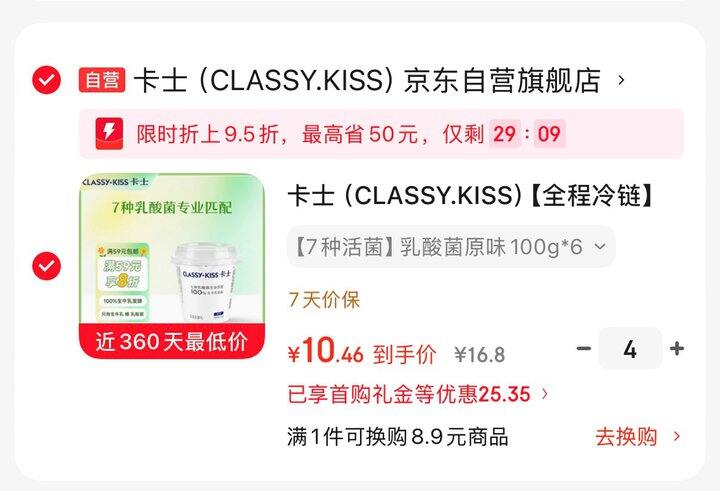 卡士乳酸菌原味酸奶风味发酵乳100g x 6杯,