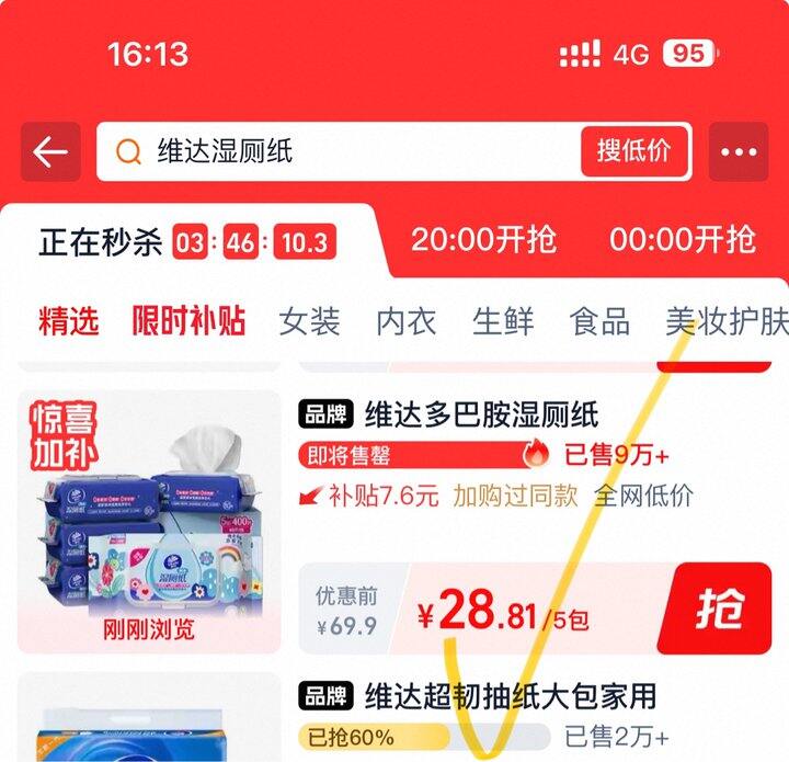 下拉详情页进入秒杀,如图从首页进去,拍下28.8