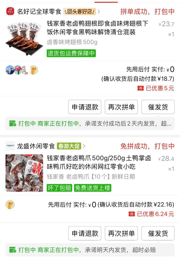 我看路由说别的也好吃,从拼多多下了点,迫不及待了[胖鹿好喜欢]。