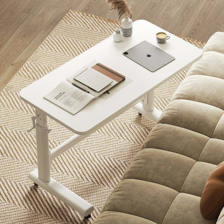 逛了好久选出来的桌子,买来做缝纫桌和拼图桌,有万向轮可以锁定,桌腿在一侧可以靠沙发放,有摇杆可以手动升降,桌子下方架子是四方形 买了配件想改成可以翻转的,明天安装来反馈可行不,收到看了下 做工很不错,桌腿很结实,挺重的,桌板还没看,是密度板估计一般。