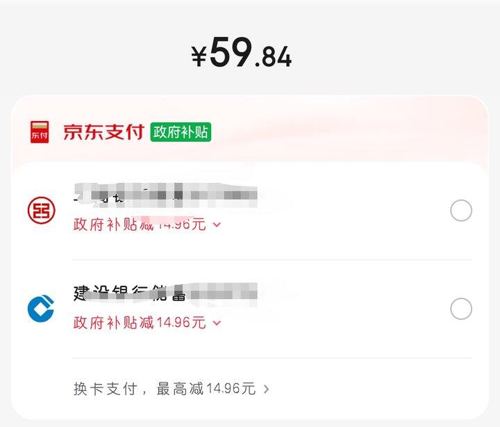 用京东支付,付款时显示国补价。
