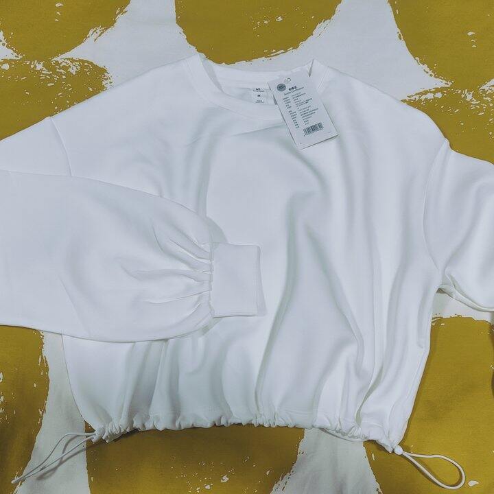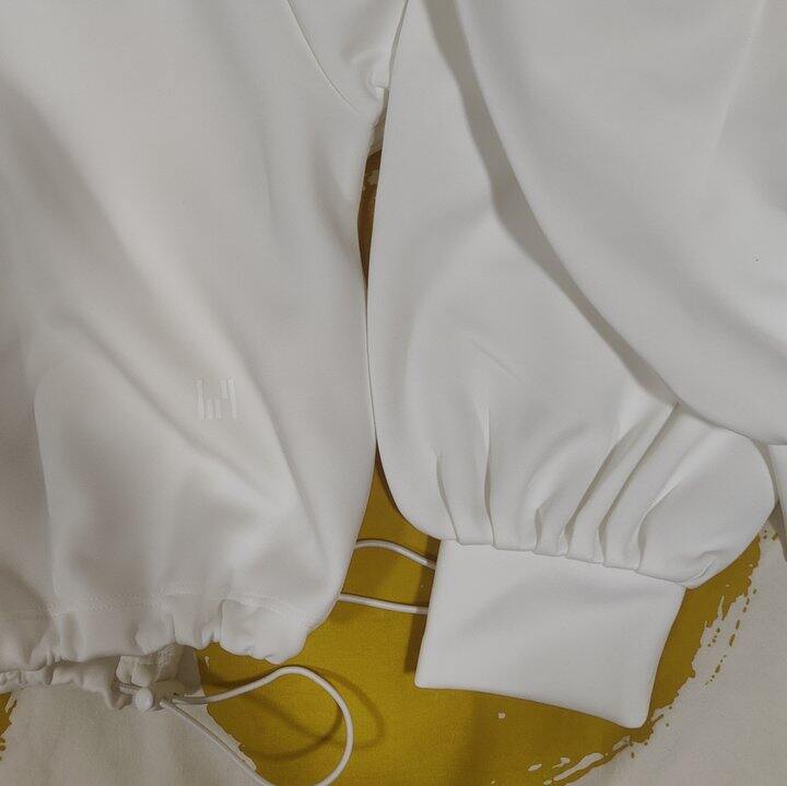 【白色款】这一款是灯笼袖加高收腰,就很好看,显得腰细腿长。这两款面料都是一样的,不是棉的,不是棉的,不是棉的。不是米白,是纯白,纯白。如果说是暖黑皮的话,穿这个纯白也许不如米白好看。
