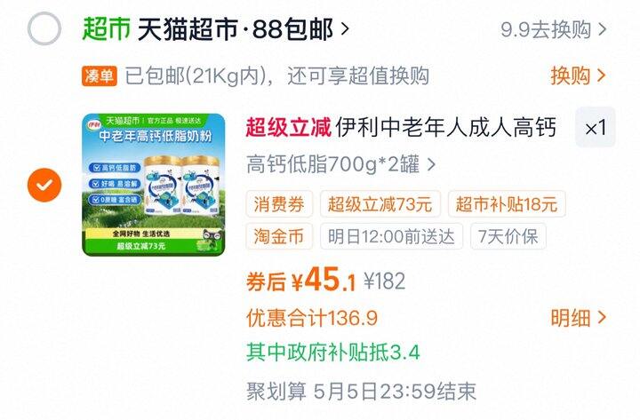 1,伊利中老年成人营养品高钙低脂牛奶粉