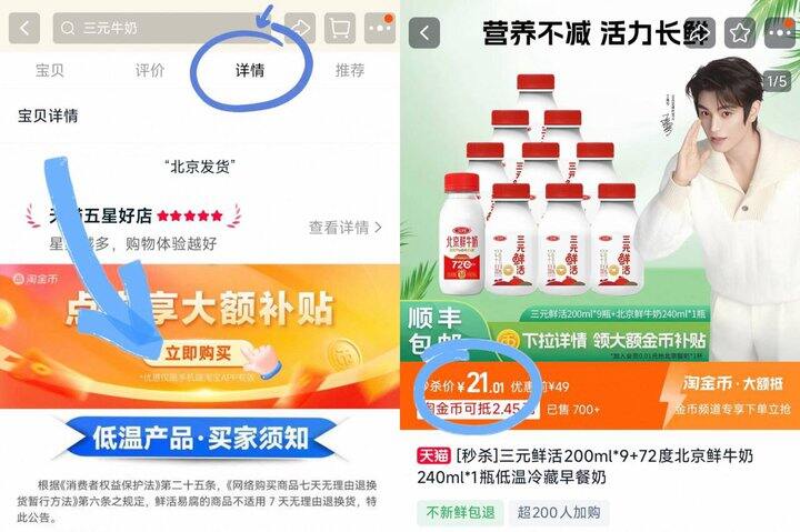 三元鲜活200ml*9瓶➕ 72度北京鲜牛奶240ml*1瓶 如图抵唫币💰21,折2.1𝒓/瓶