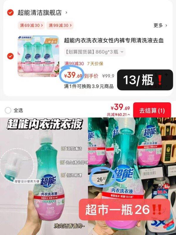 𝟏𝟑/瓶‼️超能内衣洗衣液🆘超市一桶26