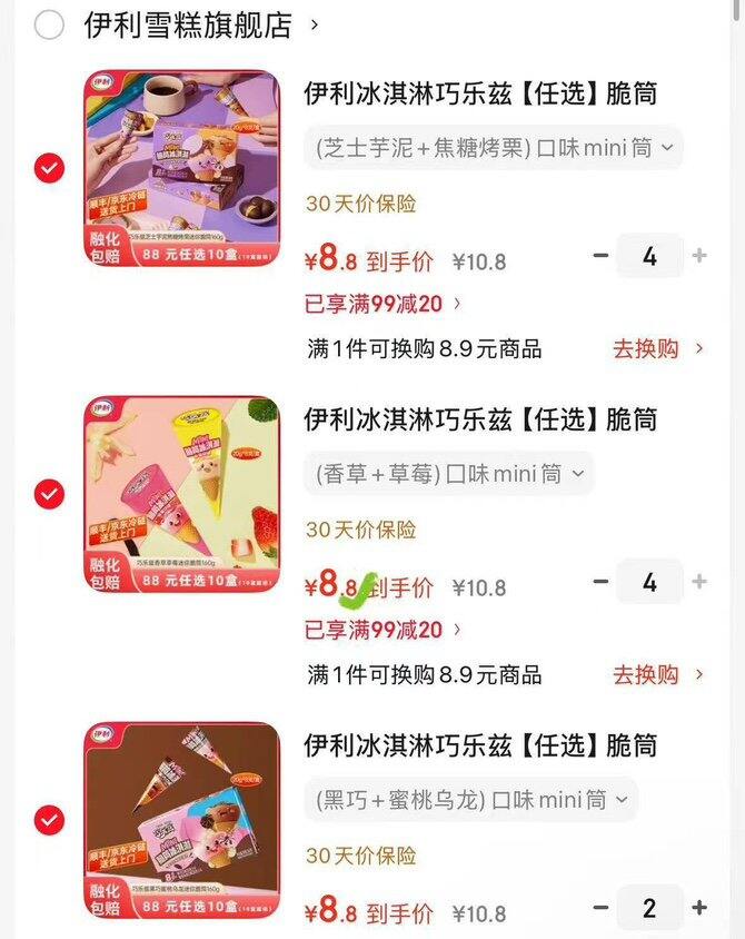 伊利 巧乐兹mini脆筒8支,选10件💰88,1.1一支https://u.jd.com/cGhintl