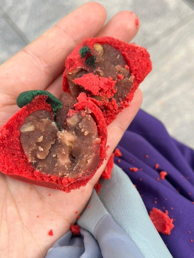 看别人家可露丽都放外面,他们家在冷藏,就买了一个,说是朗姆提子都,没太吃出来明显的味道,就是甜…