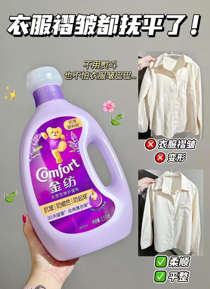 洗衣服柔顺剂相当重要,没用的时候,每次衣服洗完都会皱皱巴巴,还硬邦邦的!!用了以后洗出来的衣服就像熨斗熨过一样板正,而且香喷喷的而且还没静电,直接省去熨烫衣服那一步了,哪怕是真丝、衬衫也能直接穿!!