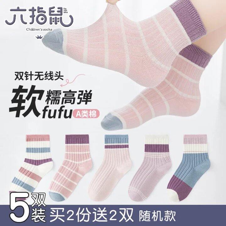 六指鼠 男女童A类纯棉无骨袜5双