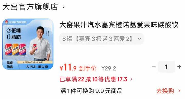 ❷ 大窑果汁汽水易拉罐330mL* 8罐【嘉宾3橙诺3荔爱2】