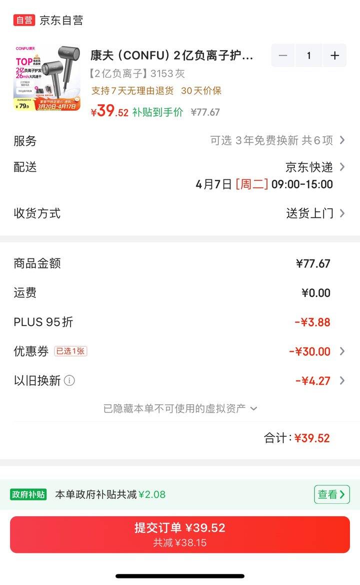 康夫2亿负离子护发电吹风机丨39.5