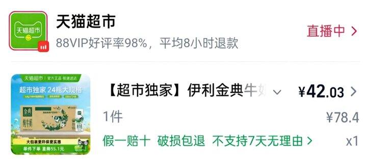 ❹ 返回🛒,2款分别拍1件,牛奶到手43.5