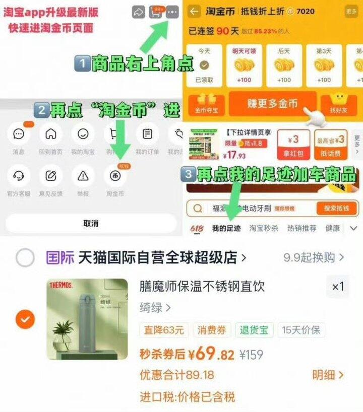 💰69.8,膳魔师不锈钢保温杯,右上角进“淘金币”拍~