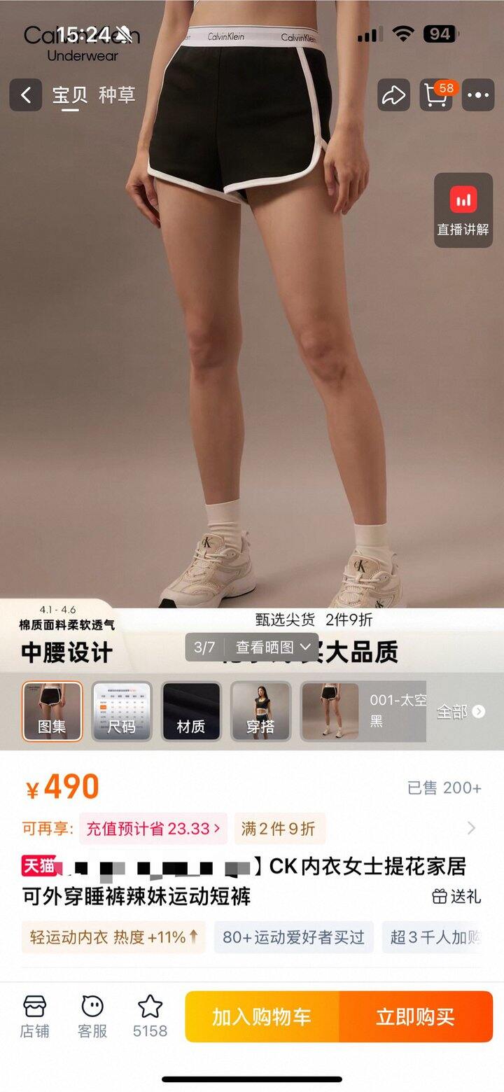 CK女士叠穿运动短裤!💰49