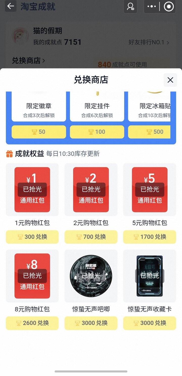 (看图)重新补了点,首页搜索成就中心进入或者在首页全部频道成就中心进入打卡获得周边,有15天20天30天40天和60天挑选,上一轮活动都是蜡笔小新周边没多少可以挑选的,已签到30天刚获得一个蜡笔小新冰箱贴(发货时间需要等)新一轮多很多好看!盲盒玩偶钥匙扣毛毯泡面碗盘子……简单打卡签到,如果断签任务就会变难,需要补签后面难度加大,找人助力和做一些任务。第二种兑通用🧧时间限制应该会难一点,还没玩过,第6张图下方我的成就兑换商店。