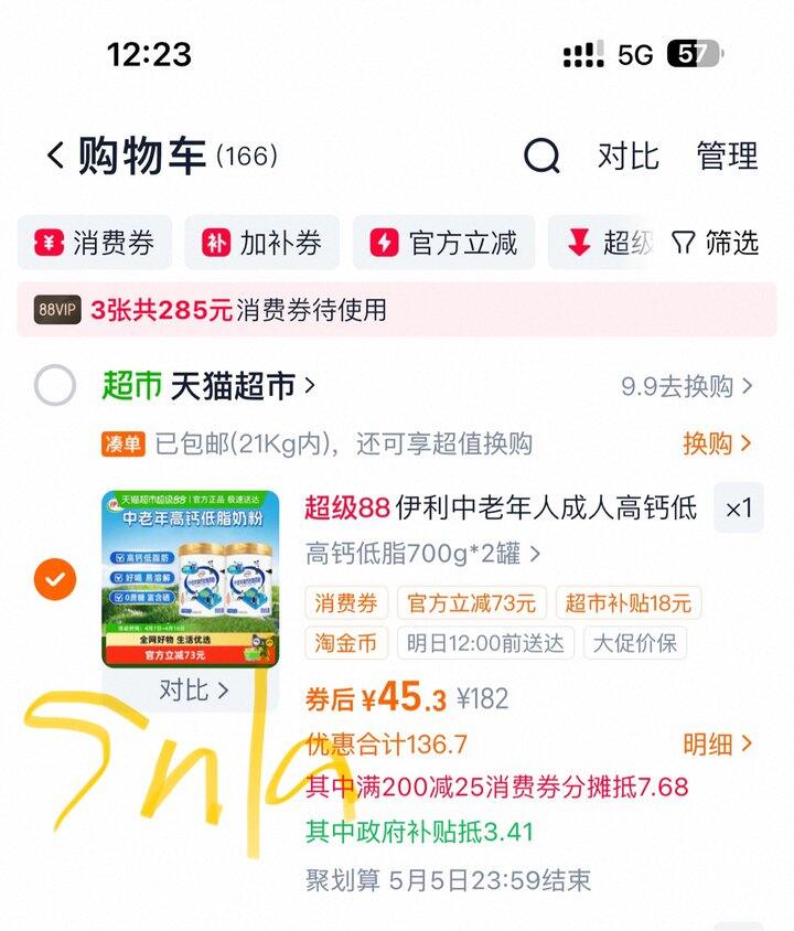 1,伊利中老年成人营养品高钙低脂牛奶粉