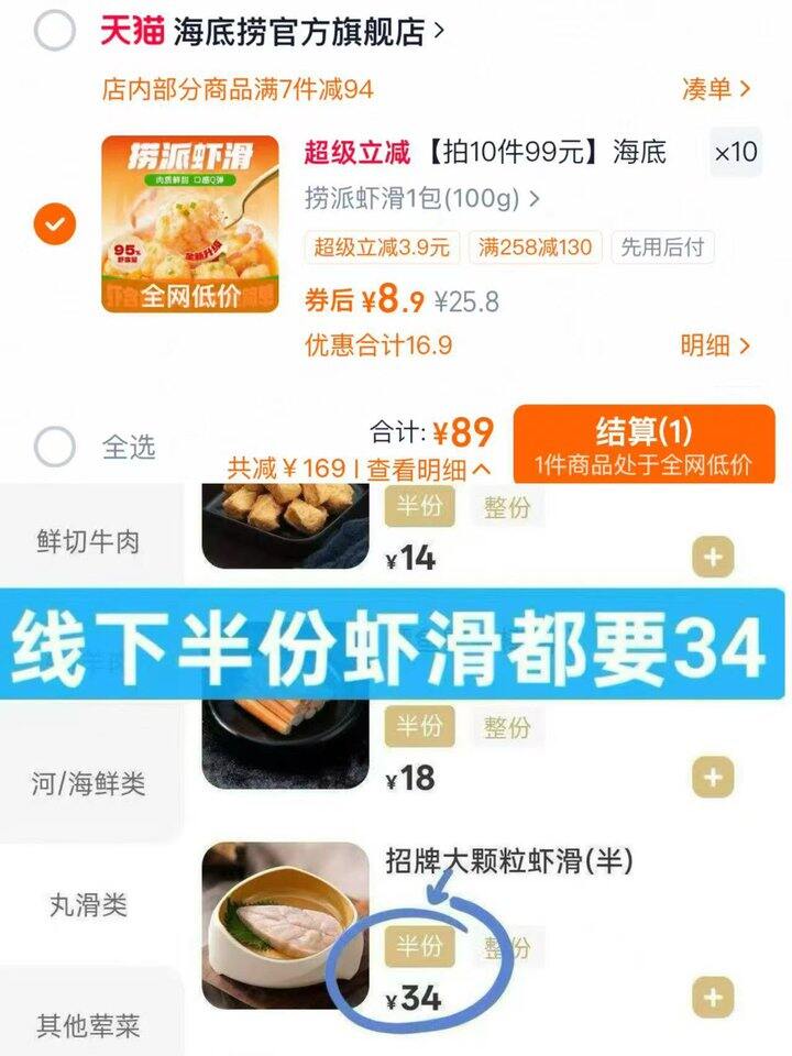 海底捞捞派虾滑🆘𝟖.𝟗/包!!线下半份34