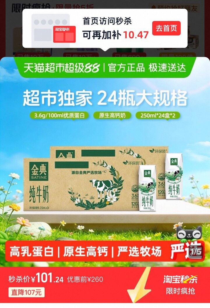 伊利金典纯牛奶250ml*24*2箱3.6蛋白