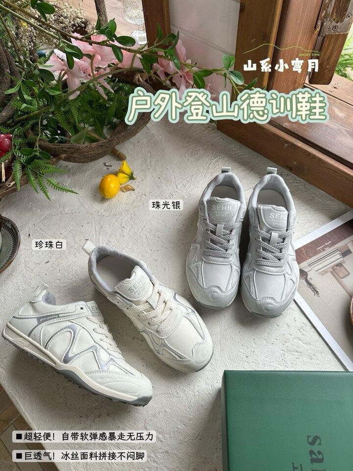 【山系小弯月】户外登山德训鞋,颜值细节+舒适性都无可挑剔侧边米线条设计时髦又好看整体层次感和高级感➕配色也是超级火的技能配色狂显瘦又好穿~~