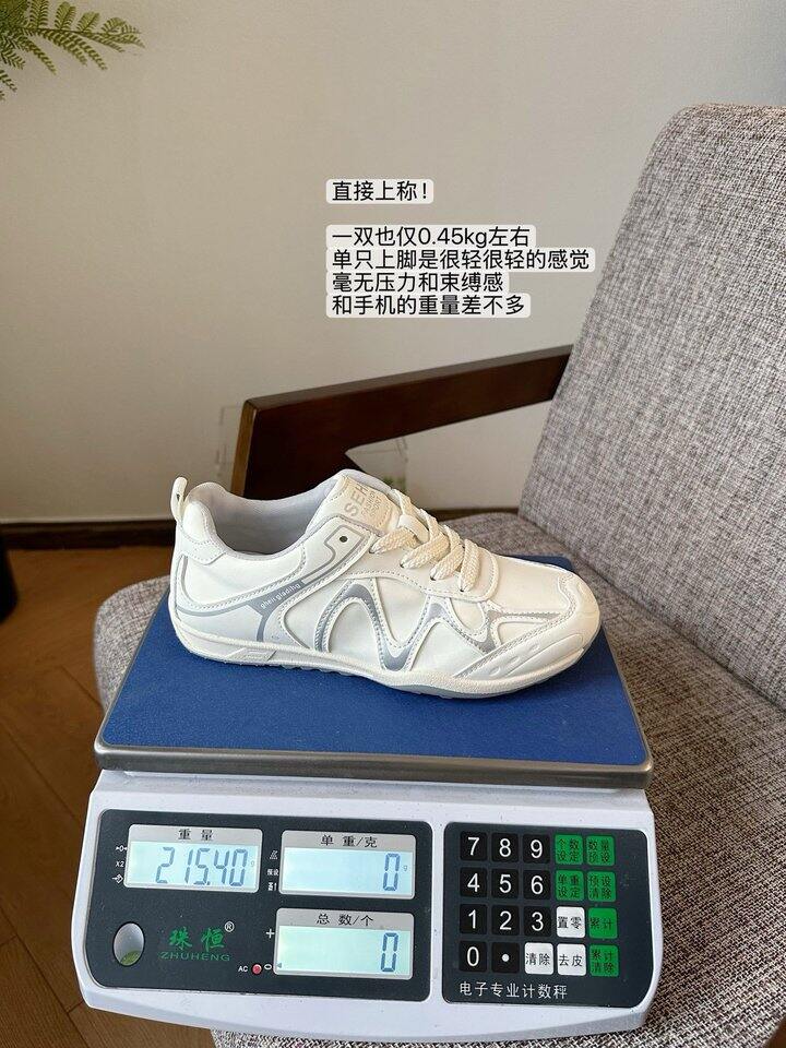 直接上称 一双也仅0.45kg左右单只上脚是很轻很轻的感觉毫无压力和束缚感和手机的重量差不多~