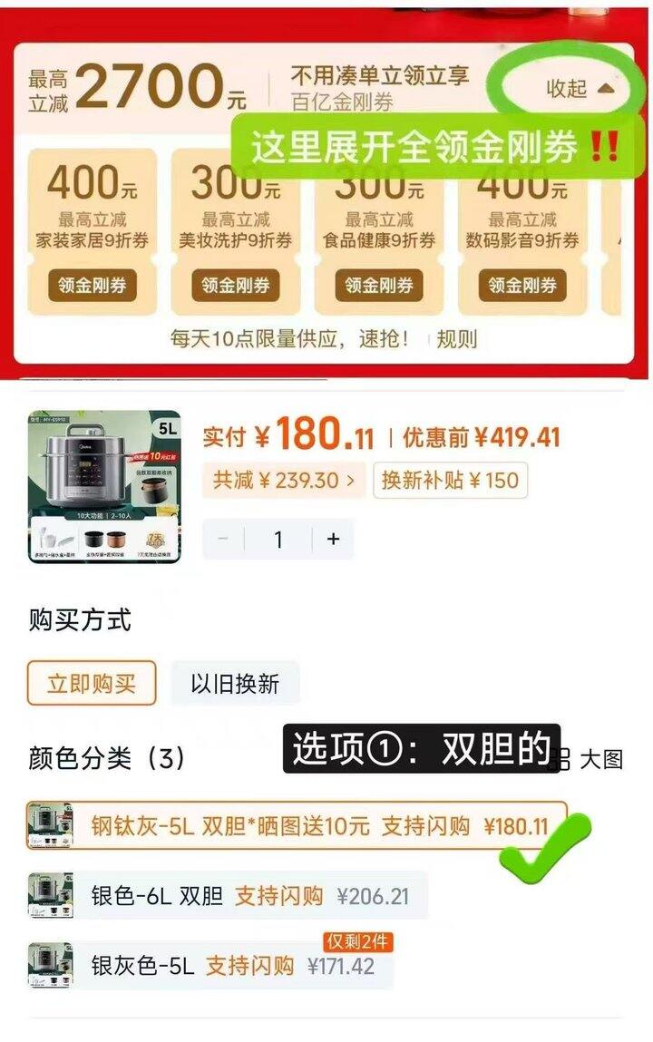 ❸美的电压力锅双胆5L 标题处手动领国补,付185晒图反10=💰175 https://m.tb.cn/h.ilkQeq6