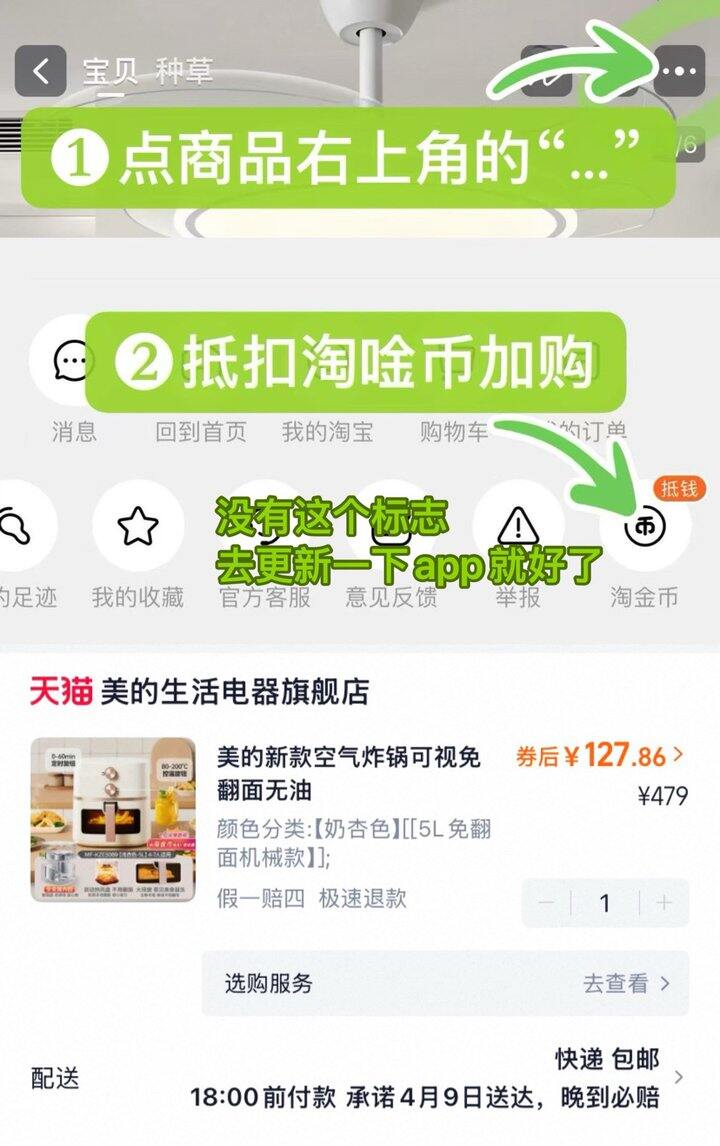 ❷右上角抵43亓唫币💰127 美的空气炸锅拍第一个选项https://m.tb.cn/h.iOYbdRr