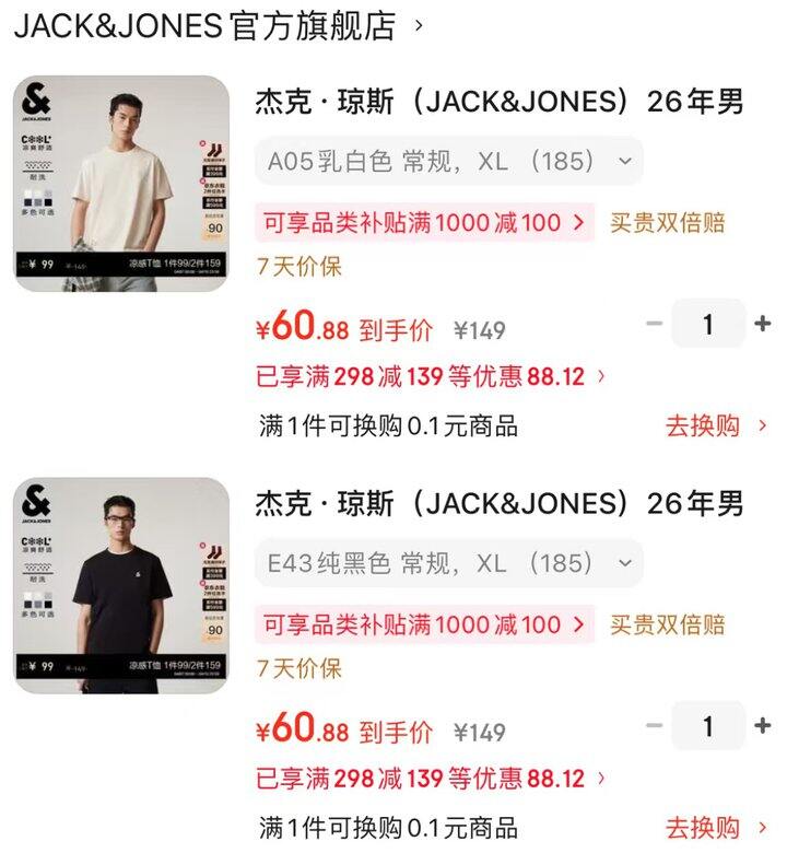 杰克·琼斯 Plus到手121.76,每件60.88,线下门店同款❗