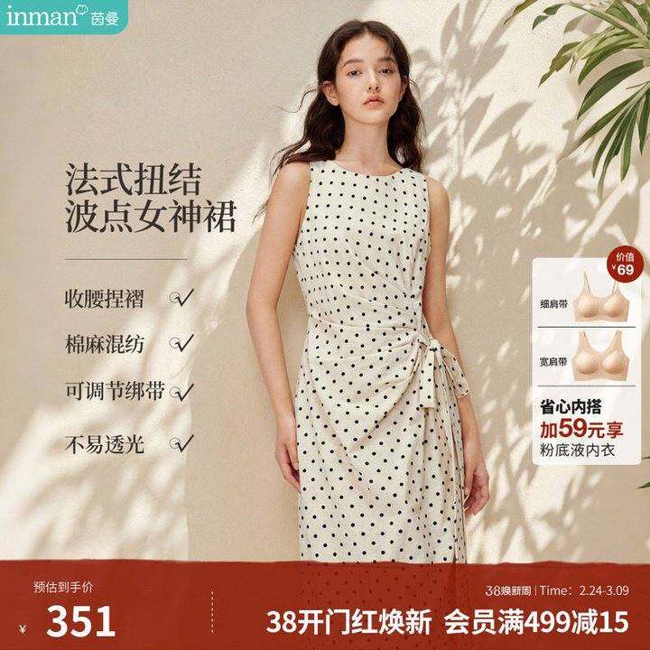 【亚麻】茵曼法式波点褶皱收腰无袖连衣裙女2026夏季显瘦背心裙子