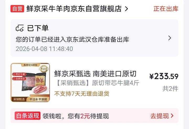 鲜京采带芯牛腱子好价,4斤/106