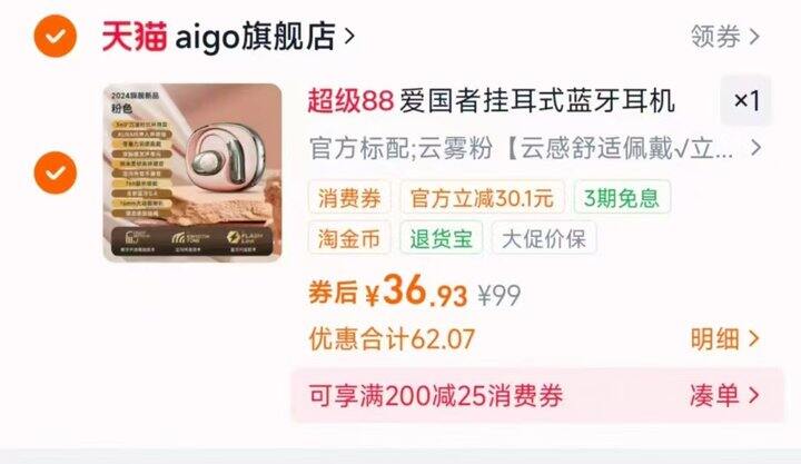 爱国者挂耳蓝牙耳机💰36.9