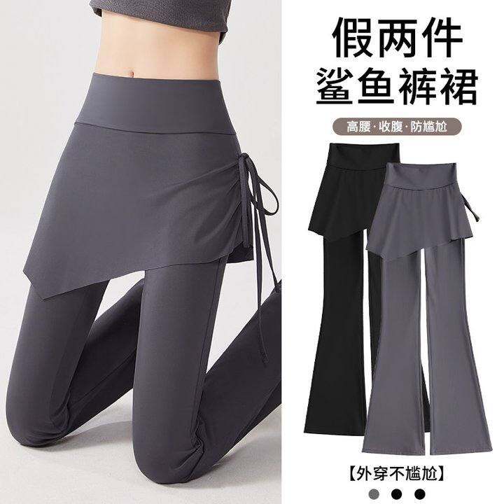 微喇叭裤子女假两件屁帘遮胯显瘦高腰提臀瑜伽健身打底马蹄鲨鱼裤
