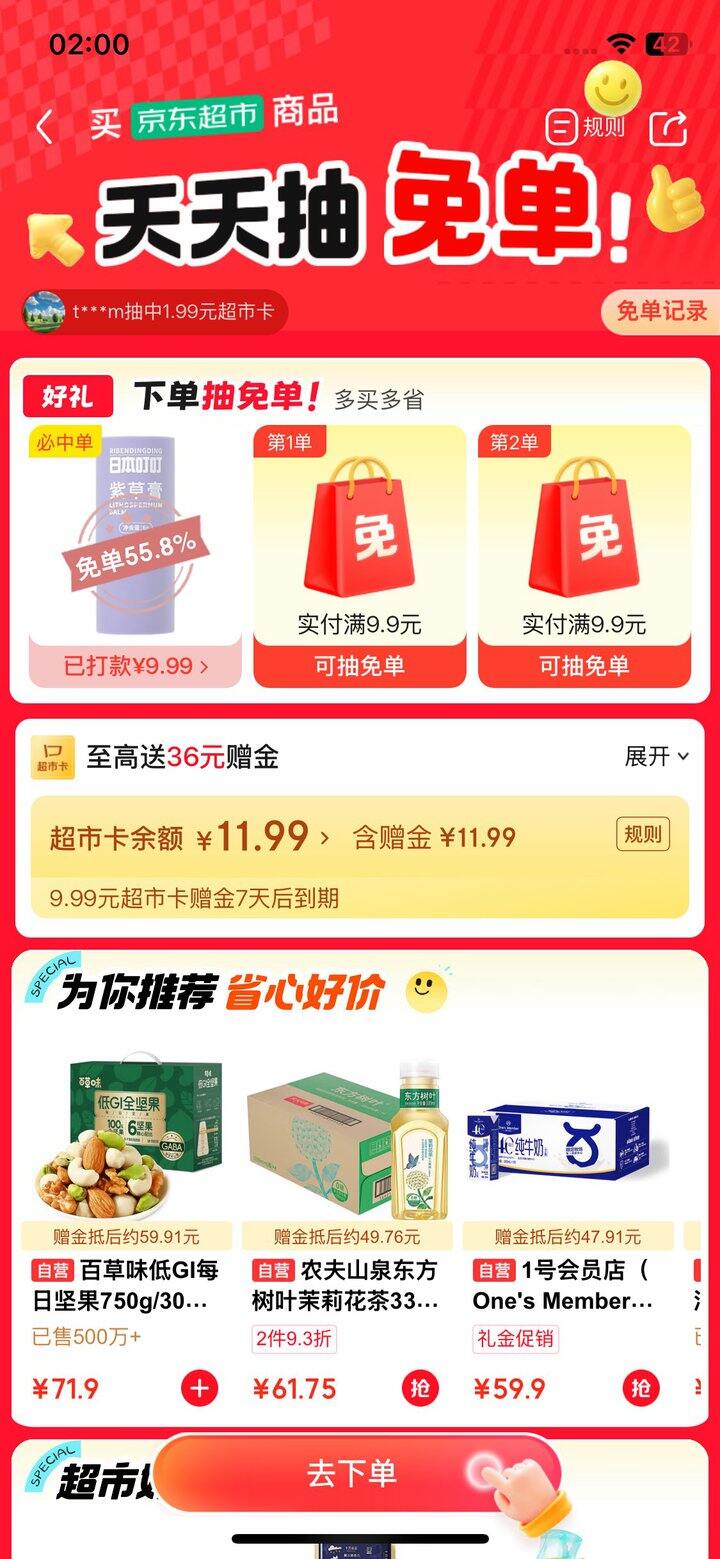 1️⃣首页-京东超市,右侧天天抽