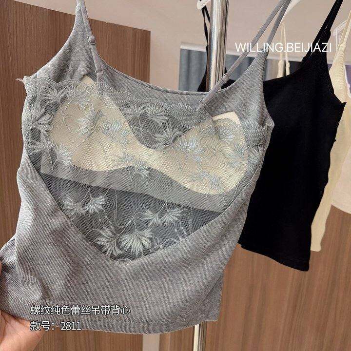 2811新款后背蕾丝吊带背心女带胸垫百搭外穿打底上衣无痕螺纹棉