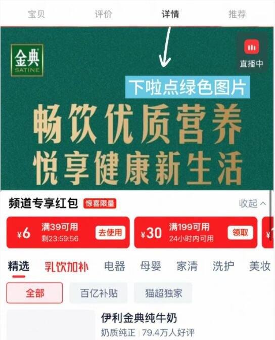 天猫弹5.95淘礼金+18.9补贴,下滑详情页点击绿色空白处跳转超补,领39-6红包,实付47.55