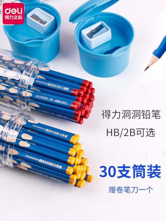得力优+洞洞铅笔小学生铅笔矫正握姿学生儿童铅笔HB三角杆洞洞笔