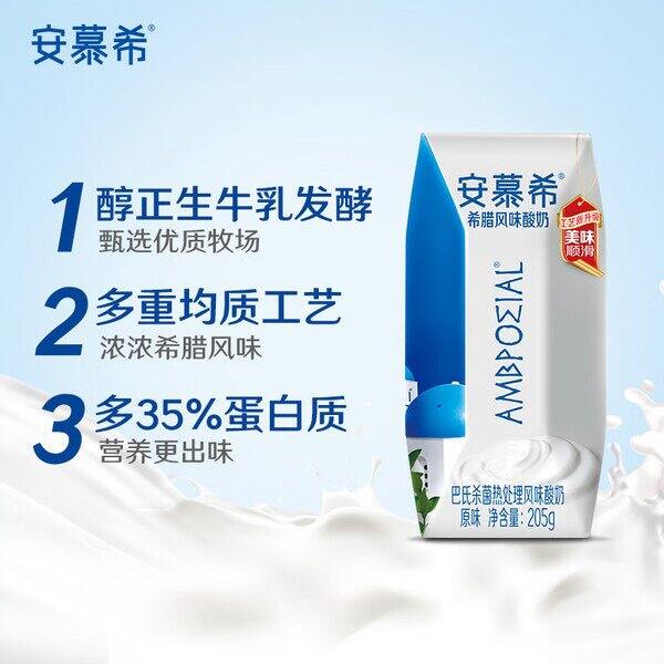 安慕希 希腊风味酸奶原味 205g*12盒*1箱